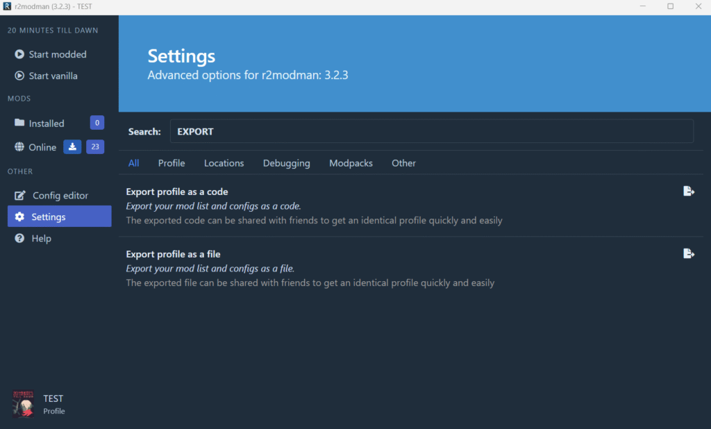 Sharing modpacks in R2ModMan is straightforward, and it includes two basic steps. First, you will need to export your Modpack for a game. And then, to get the same modpack, the other user needs to import it.